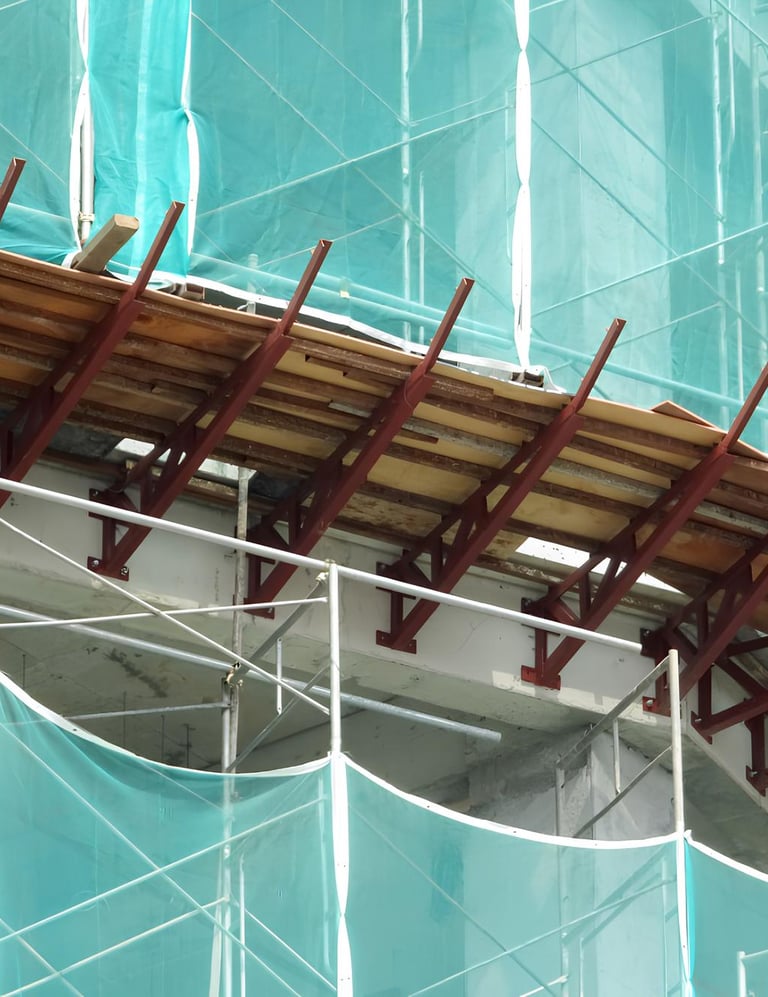 Instalado na laje ou estrutura da edificação, cria uma área de proteção abaixo do local de trabalho, reduzindo significativamente o risco de acidentes com trabalhadores e terceiros, especialmente em áreas urbanas.
