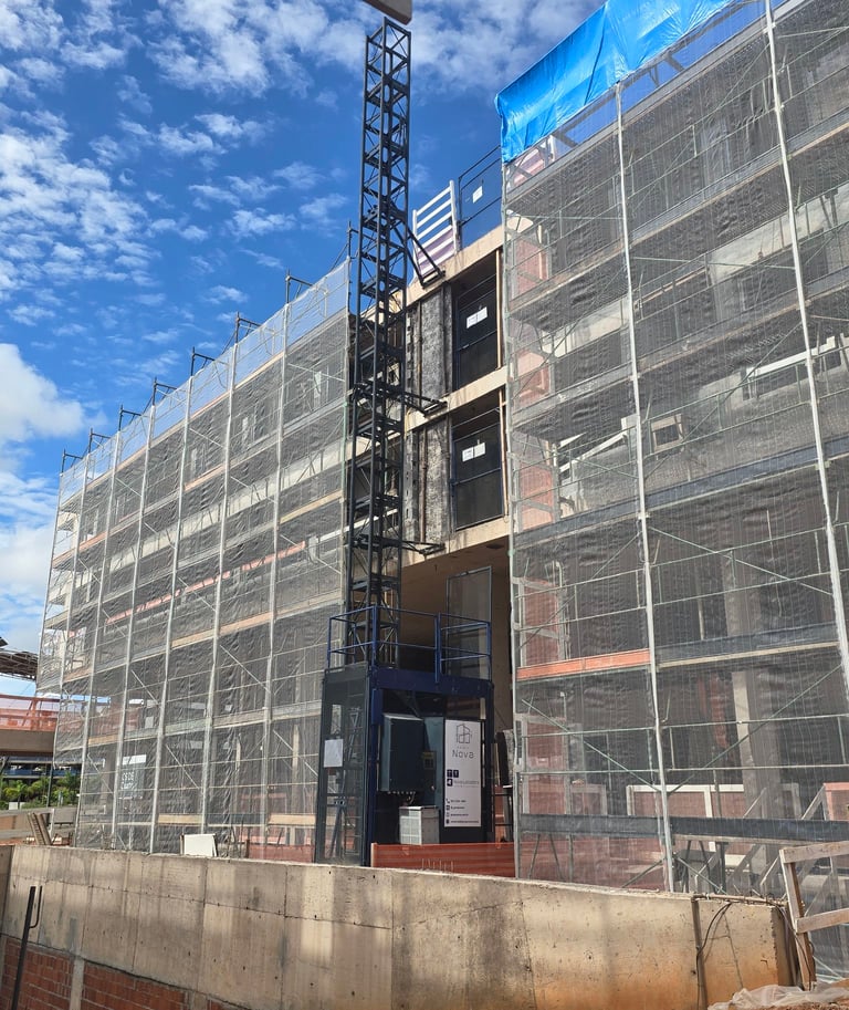 O elevador cremalheira é um equipamento utilizado para o transporte vertical de pessoas e materiais em obras da construção civil. Operando por meio de sistema de cremalheira e pinhão, garante deslocamento seguro, controlado e contínuo ao longo da estrutura, aumentando a produtividade e reduzindo riscos no canteiro de obras.